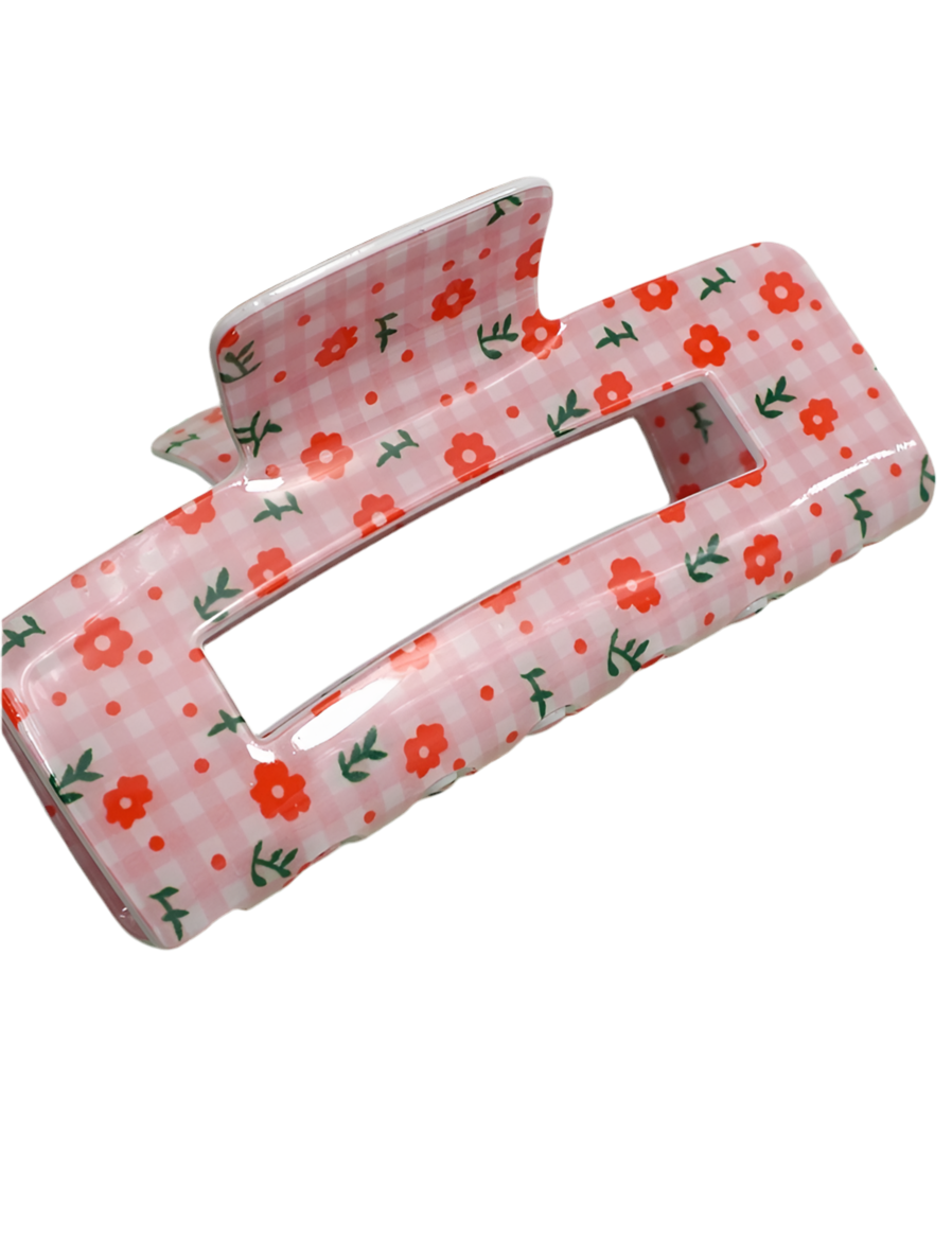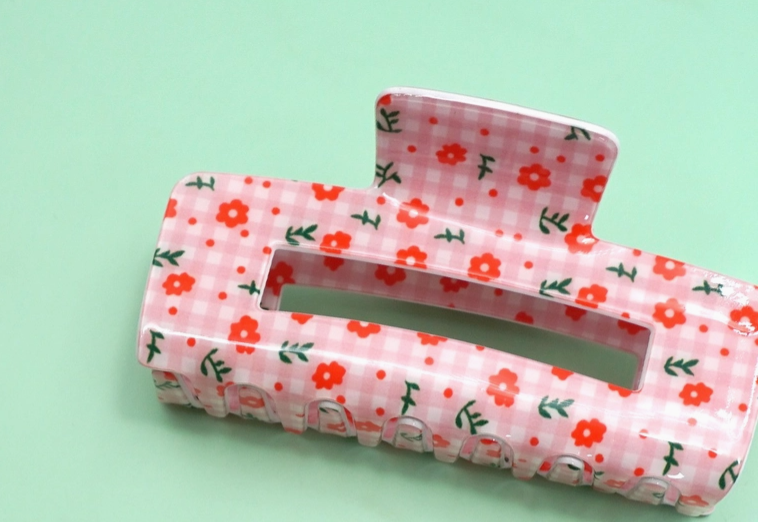 Large PVC Floral Daisy and Rose Hair Claw Clips are stylish functional to hold your hair securely while adding a playful touch to your look. Made from durable PVC material, these clips feature a vibrant cherry design that stands out. DIMENSION Width: 4" length: 2.5"